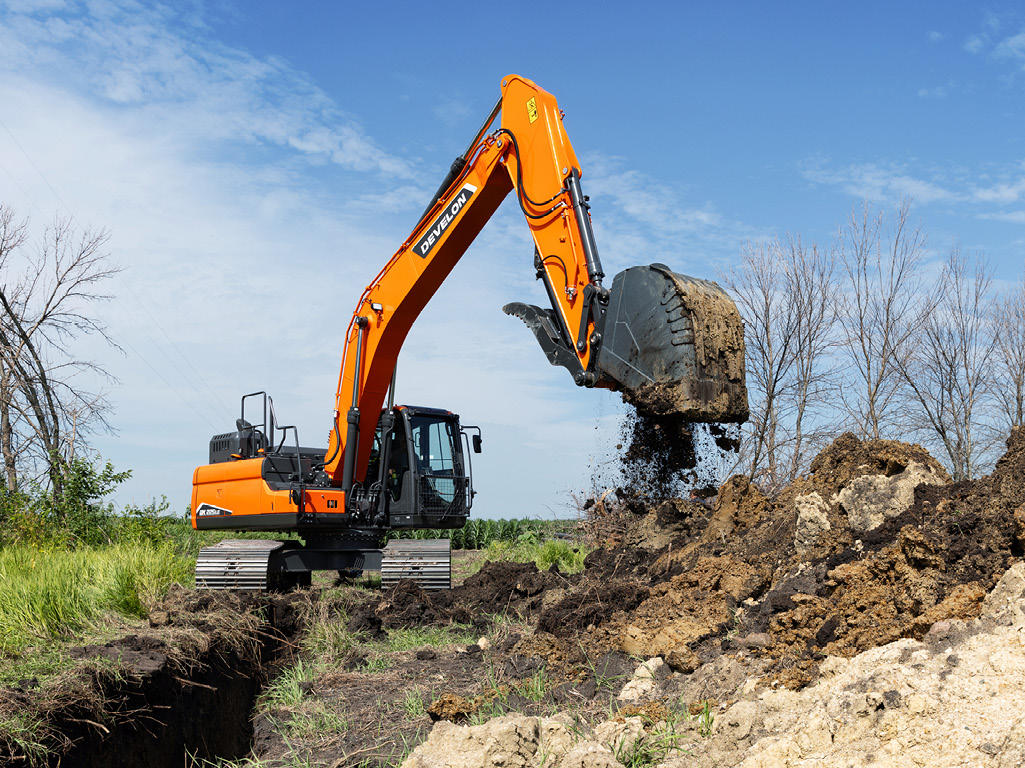 DEVELON offers a large lineup of crawler excavators, all of which deliver the impressive power your work demands — plus the fuel savings, comfort, control and innovation you need to conquer today’s challenges. Superior hydraulics, improved lifting capacity and stability, strong swing torque and fast cycle times combine to help you navigate any job site with ease.