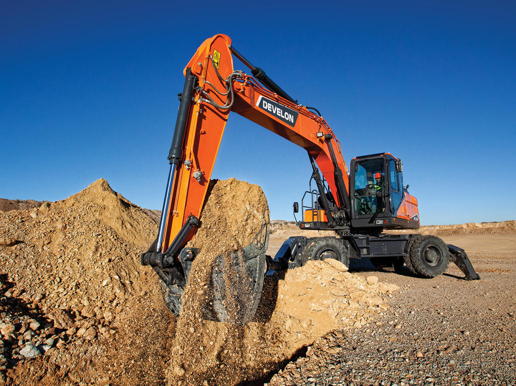 DEVELON wheel excavators are strong performers for municipalities where road travel is necessary, or for general contracting and site development that requires frequent travel from point to point. Superior hydraulics, including one-touch power boost, provide improved digging and loading capacity, and four power modes let you tailor your machine’s performance to the task at hand.